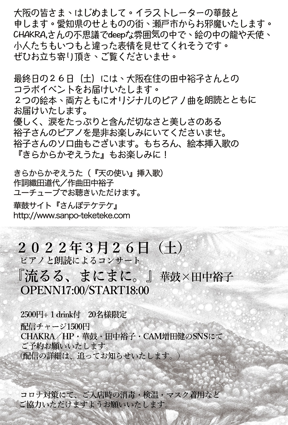 ピアノと朗読によるコンサート「流るる、まにまに」華鼓×田中裕子@チャクラ