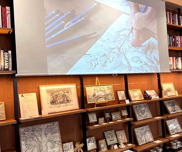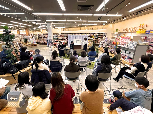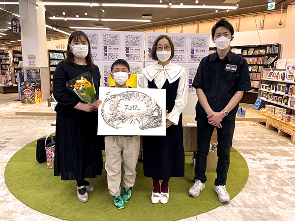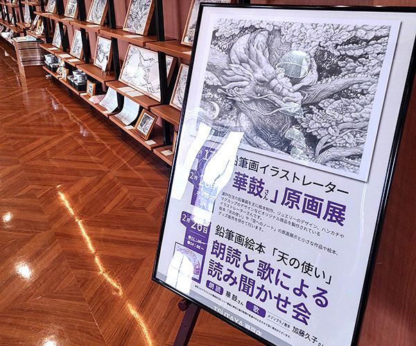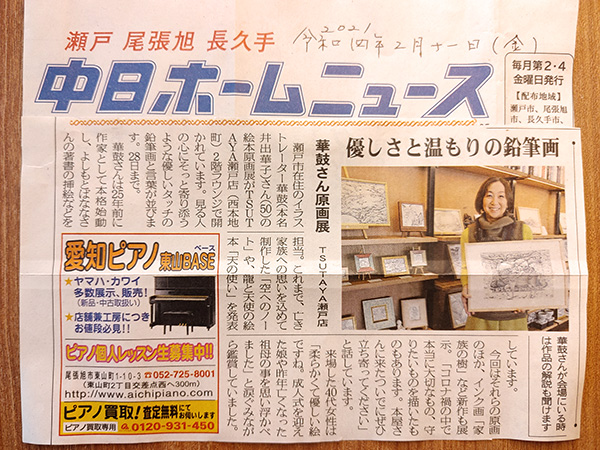 愛知県瀬戸市。TSUTAYAイマジン白揚瀬戸店。1月17日から2月28日まで。43日間の 原画展無事に終了いたしました。お越しいただいた皆様、本当にありがとうございました。 長い展覧会でしたが、私も40日間通わせていただきました。お客様とのお話、絵を見てくださっている姿を私の力にして、また制作していきたいと思っております。最終日の2日前には、 メゾソプラノ歌手の加藤久子さんと共に朗読と歌のライブイベントもさせていただきました。 次男坊の千も朗読の天使役で参加してくれました。 お越しいただいた皆さま、ありがとうございました。このような形でお届けできたことをとても幸せに感じました。また、パワーアップして戻ってきたいと思います、また、元気に、お目にかかれますように!今後もどうぞ宜しくお願い致します。